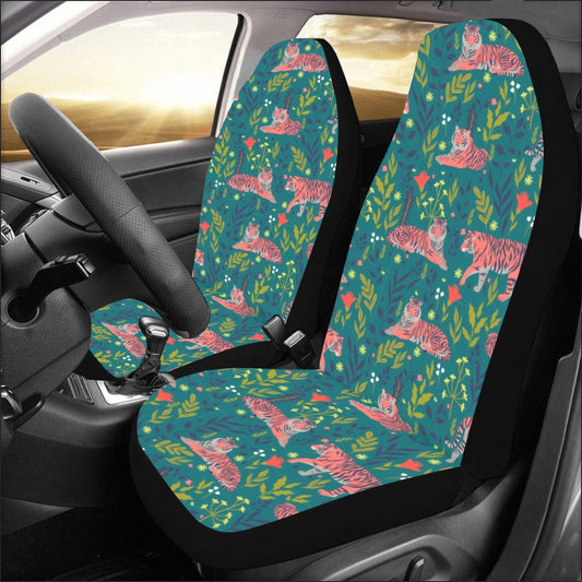 Tropical Tiger Car Seat Covers for Vehicle 2 pc, Animal Print Cheetah Cute Front Seat, Car SUV Vans Gift for Her Him Protector Accessory