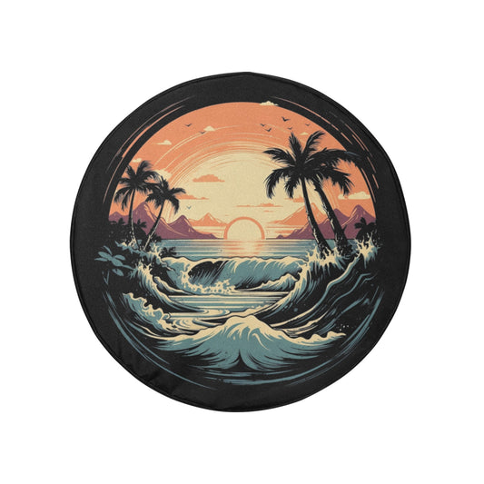 Beach Spare Tire Cover, Sunset Backup Camera Hole Rear Wheel Accessories Sun Tropical Palm Trees Waves Custom Unique Trailer Camper RV Back