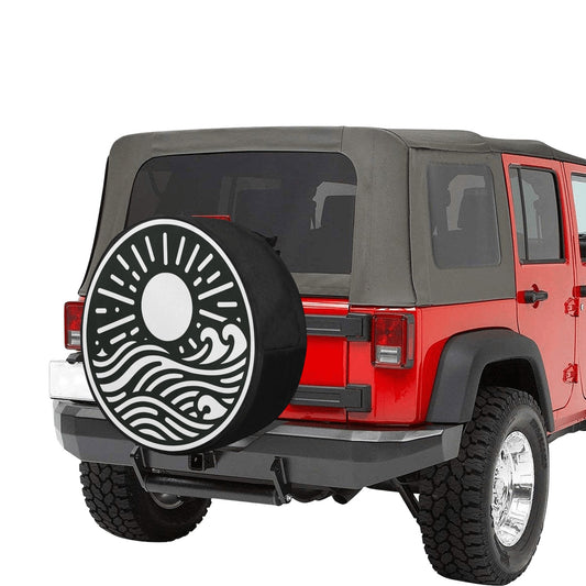 Sun Waves Spare Tire Cover, Tropical Beach Backup Camera Hole Wheel Car Accessories Unique Design Back Aesthetic Sunset Spare Rear Men Women