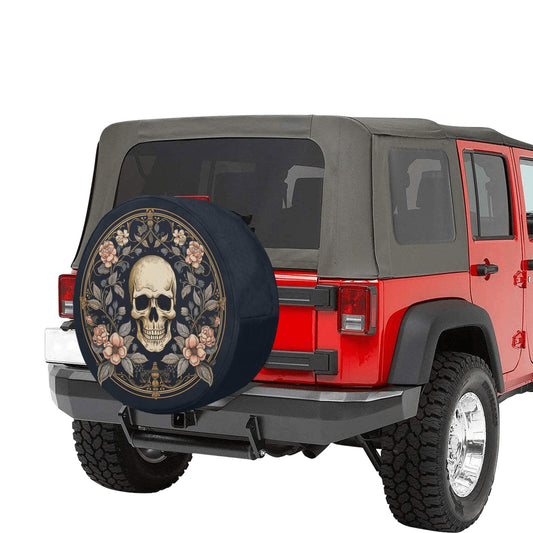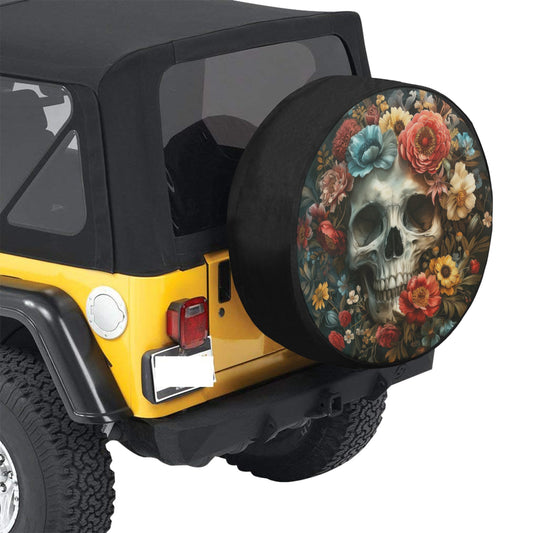 Floral Skull Spare Tire Cover, Retro Flowers Skeleton Backup Camera Hole Rear Wheel Unique Design Trailer Camper RV Back Men Women Protector