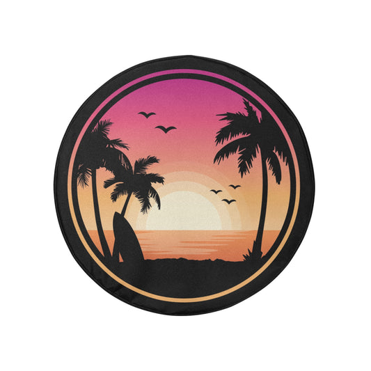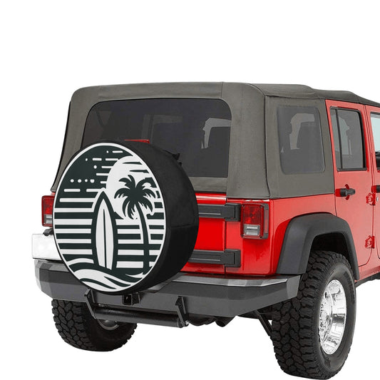 Surfboard Sun Palm Trees Spare Tire Cover, Wheel Tropical Custom Unique Car Accessory Beach Back Up Camera Hole Men Women Girls Camper RV