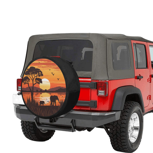 Safari Spare Tire Wheel Cover, Sunset Africa Wild Animal Elephants Adventure Travel Back Up Camera Hole Design Spare RV Car Lover Camper