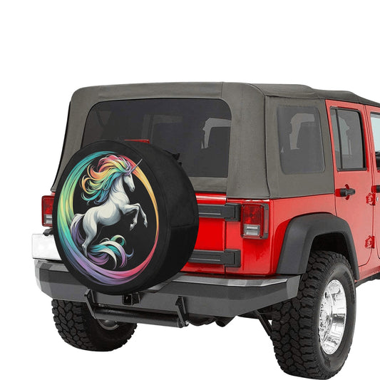 Unicorn Spare Tire Cover, Rainbow Cool Backup Camera Hole Rear Spare Extra Wheel Unique RV Back Cars RV Men Women Trailer Campers