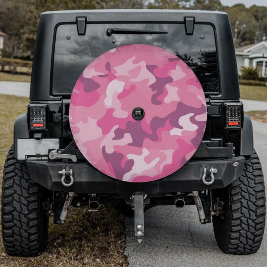 Pink Camo Spare Tire Cover, Camouflage Backup Camera Hole Unique Back Extra Wheel Cars RV Men Women Girls Trailer Campers