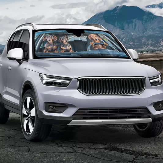 Dachshund Sun Windshield, Funny Dogs Car Accessories Auto Vehicle Shade Protector Front Window Visor Screen Cover Blocker Decor Gift