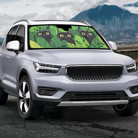 Cute Cats Sun Windshield, Anime Forest Plants Car Vehicle Accessories Auto Shade Protector Front Window Visor Screen Cover Blocker Decor