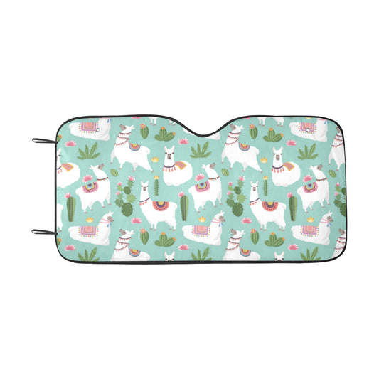 Alpaca Cactus Windshield Sun Shade, Green Plants Car Accessories Banner Auto Cover Protector Window Visor Screen Decor 55" x 29.53"