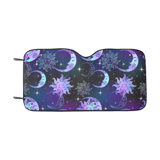 Moon Stars Windshield Sun Shade, Boho Bohemian Galaxy Purple Car Accessories Auto Cover Protector Window Visor Screen Decor 55" x 29.53"