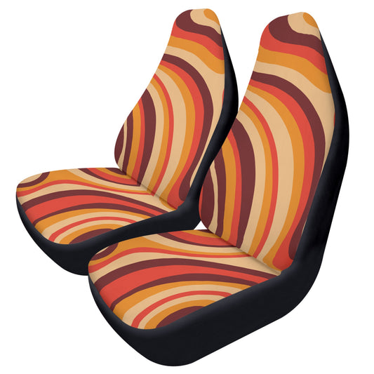 70s Stripe Car Seat Covers (2 pcs), Brown Orange 1970s Pattern Auto Front Seat Dog Pet Vehicle SUV Universal Protector Accessory Men Women