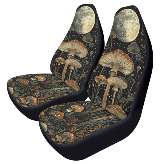 Moon Mushrooms Car Seat Covers (2 pcs), Cottagecore Witchy Pattern Auto Front Dog Pet Vehicle SUV Universal Protector Accessory Men Women