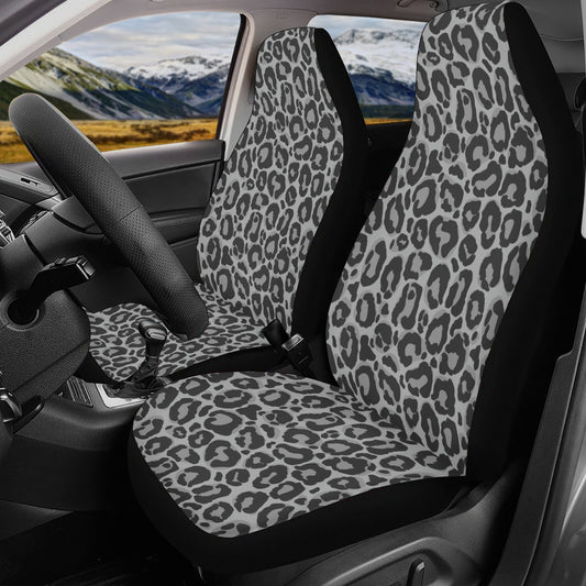 Grey Leopard Front and Back Car Seat Covers Full Set (4 pcs), Animal Print Auto Dog Pet Vehicle SUV Universal Protector Accessory Men Women