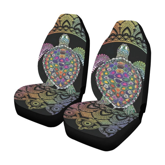 Turtle Mandala Boho Car Seat Covers 2 pc, Tribal Black Pattern Bohemian Art Front Auto SUV Protector Accessory Decor Automotive Universal