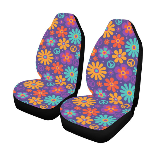 Groovy Flower Car Seat Covers for Vehicle 2 pc, Peace Sign Daisy Floral 70s Hippie Cute Front Car SUV Vans Gift Her Women Truck Accessory