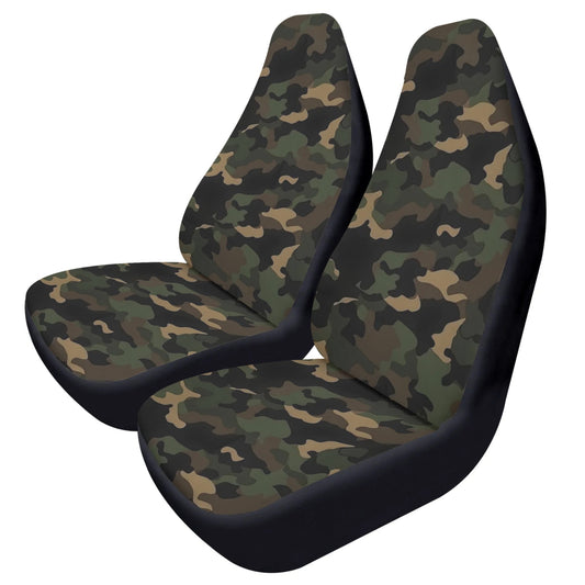 Camo Car Seat Covers (2 pcs), Green Black Camouflage Pattern Auto Front Dog Pet Vehicle SUV Universal Protector Accessory Men Women