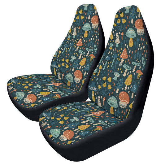 Mushroom Car Seat Covers (2 pcs), Nature Cottagecore Pattern Auto Front Seat Dog Pet Vehicle SUV Universal Protector Accessory Men Women