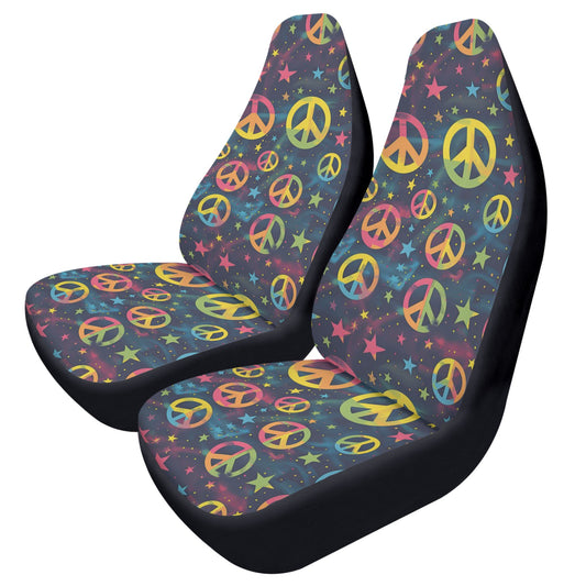Rainbow Peace Sign Car Seat Covers (2 pcs), Hippie Love Pattern Auto Front Seat Dog Pet Vehicle SUV Universal Protector Accessory Men Women