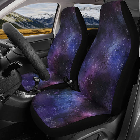 Galaxy Space Front Back Car Seat Covers Full Set (4 pcs), Stars Purple Universe Auto Dog Pet Vehicle SUV Universal Protector Men Women
