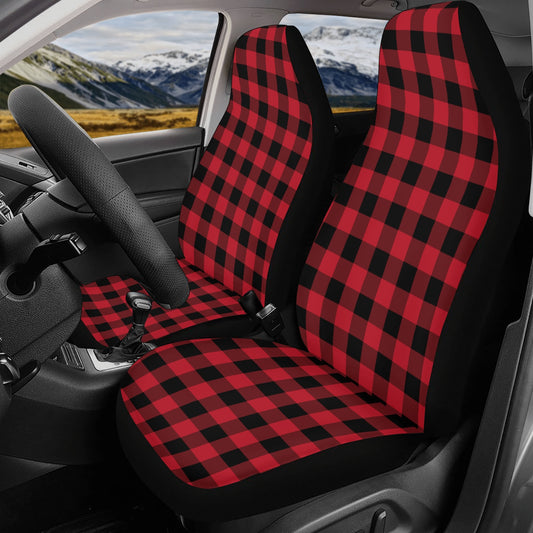 Red Buffalo Plaid Front Back Car Seat Covers Full Set (4 pcs), Black Check Auto Dog Pet Vehicle SUV Universal Protector Accessory Men Women
