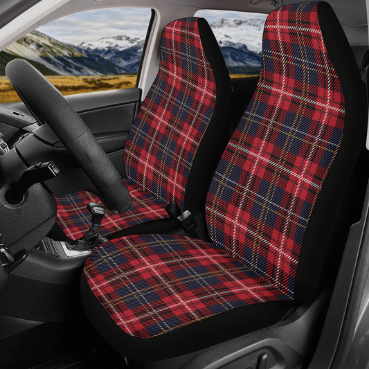 Red Plaid Front and Back Car Seat Covers Full Set (4 pcs), Tartan Checkered Auto Dog Pet Vehicle SUV Universal Protector Accessory Men Women