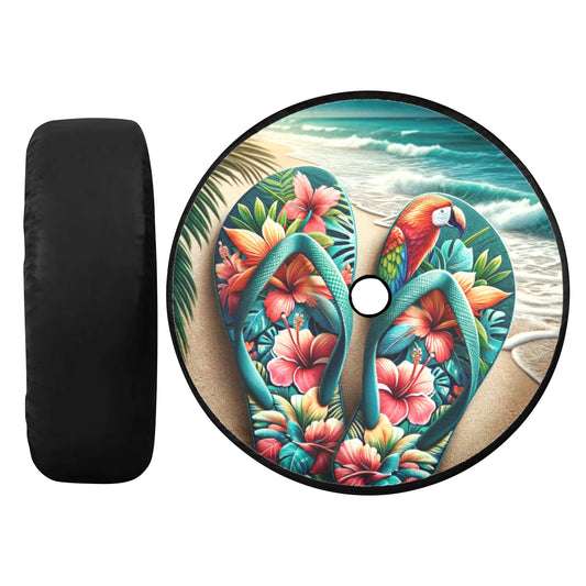 Beach Flip Flops Sun Spare Tire Cover, Ocean Backup Camera Hole Rear Wheel Car Accessories Palm Tree Unique Design Back Aesthetic Men Women