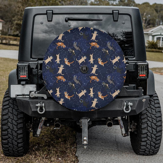 Galaxy Cats in Space Spare Tire Cover, Kittens Constellation Wheel Accessories Unique Backup Camera Hole Trailer Back Extra Rear RV Camper