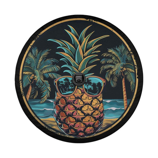 Pineapple Spare Tire Cover, Sunglasses Beach Ocean Palm Tree Backup Camera Hole Rear Wheel Car Accessories Unique Design Back Men Women