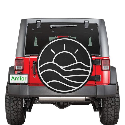 Sun Waves Spare Tire Cover, Beach Sea Ocean Minimalist Sunset Rear Wheel Unique Car Accessory Back Up Camera Hole Men Women Girls Camper RV