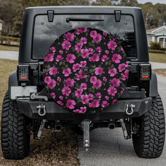 Pink Flowers Spare Tire Cover, Floral Black Backup Camera Hole Unique Back Extra Wheel Cars RV Men Women Girls Trailer Campers