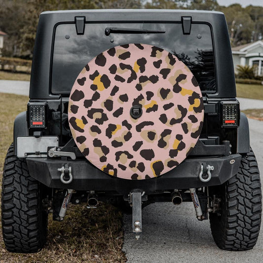 Pink Leopard Spare Tire Cover, Animal Cheetah Print Backup Camera Hole Unique Back Extra Wheel Cars RV Men Women Girls Trailer Campers
