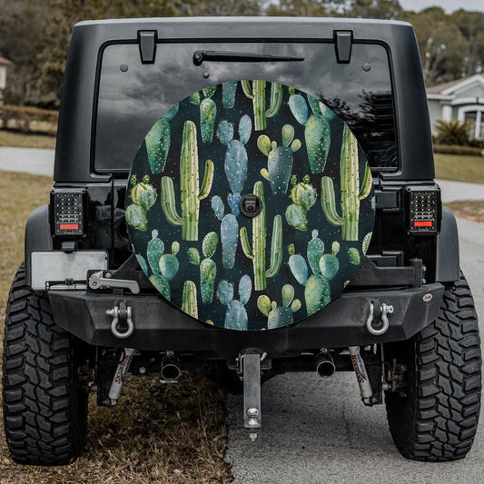 Cactus Spare Tire Cover, Succulent Backup Camera Hole Unique Back Extra Wheel Cars RV Men Women Girls Trailer Campers