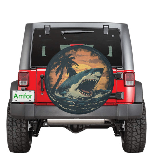 Great White Shark Bite Tire Cover, Ocean Funny Beach Extra Spare Wheel Backup Camera Hole Unique Design RV Back Men Women Camper Trailer