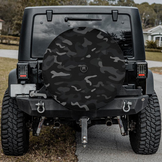 Black Camo Spare Tire Cover, Camouflage Backup Camera Hole Unique Back Extra Wheel Cars RV Men Women Girls Trailer Campers