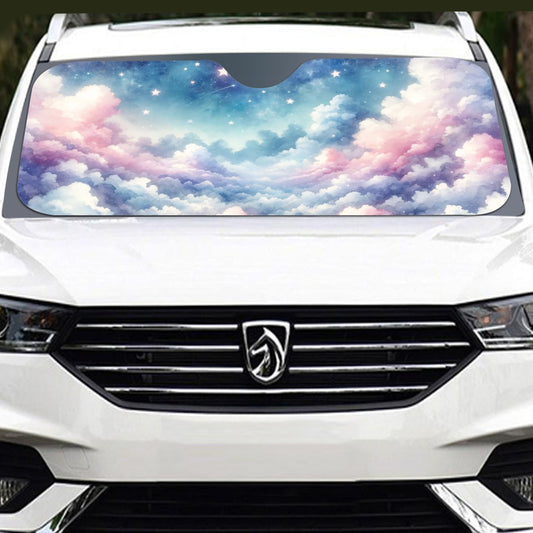 Pastel Clouds Car Sun Shade, Watercolor Starry Sky Front Windshield Coverings Blocker Auto Protector Window Visor Screen Cover Men Women