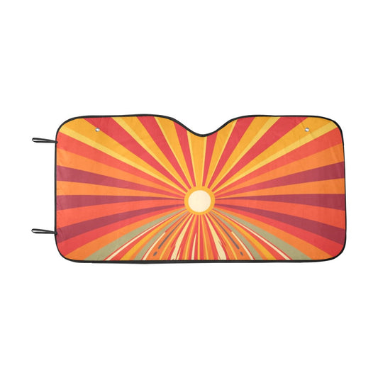 Sunburst Windshield Sun Shade, Groovy Vintage Retro Radial Rays 70s Art Car Accessories Auto Protector Window Visor Screen Cover Blocker