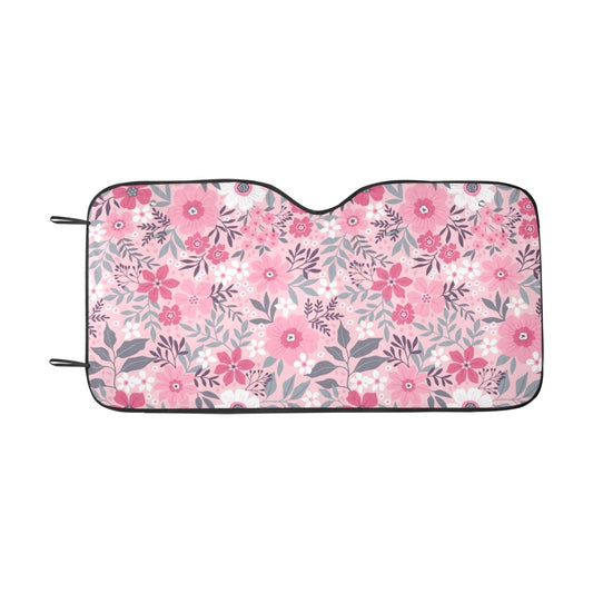 Pink Floral Cute Sun Windshield, Flowers Car SUV Accessories Auto Shade Protector Front Window Visor Women Girls Screen Cover Decor