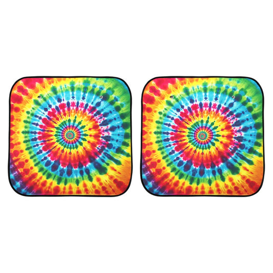 Rainbow Tie Dye Car Sun Shade 2 Piece Set, Hippie Colorful Windshield Side Window Foldable Trucks Auto SUV Protector Visor Screen Cover
