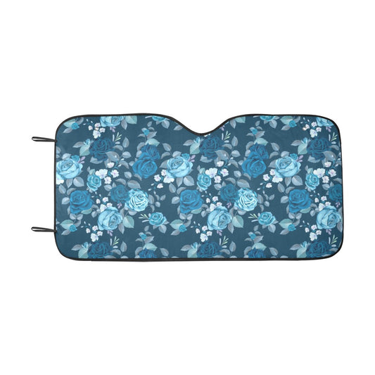 Blue Flowers Sun Windshield, Cute Floral Car Accessories Auto Shade Protector Window Visor Screen Cover Women Decor 55" x 29.53"