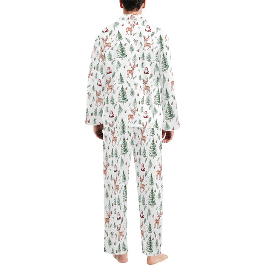 White Christmas Pajama Set for Men, Xmas Tree Reindeer Santa Winter Matching Family PJ Guys Long Sleeve Sleep Shirt Night Wear Couple