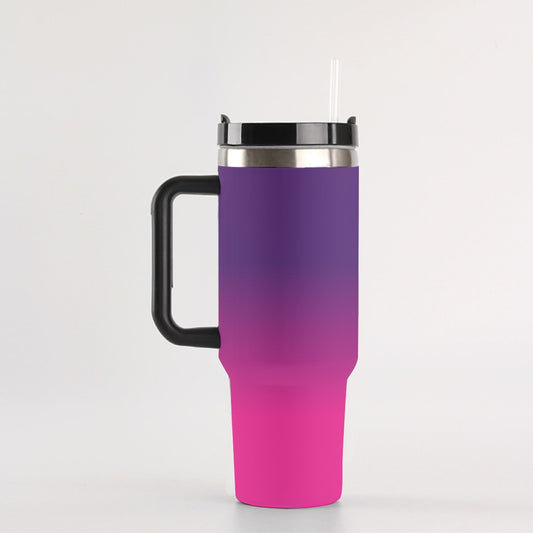 Pink Purple Ombre 40 oz Tumbler with Handle Straw, Gradient Tie Dye Stainless Steel Cup Travel Mug Coffee Insulated Sublimation Office