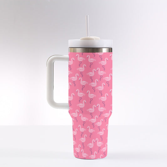 Pink Flamingo 40 oz Tumbler with Handle Straw, Stainless Steel Cup Travel Mug Coffee Insulated Sublimation Office Gift Men Women