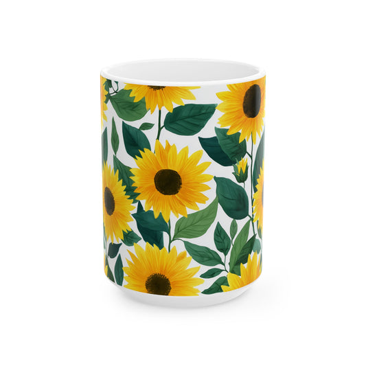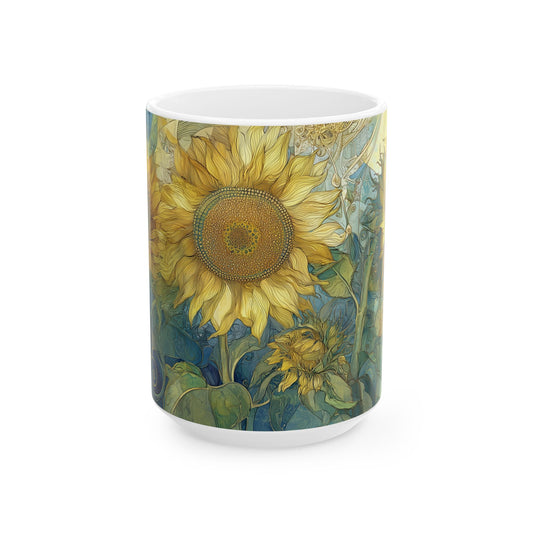 Sunflowers Coffee Mug (11oz, 15oz), Floral Flowers Watercolor Art Ceramic Cup Tea Hot Chocolate Lover Unique Microwave Safe Cool Gift