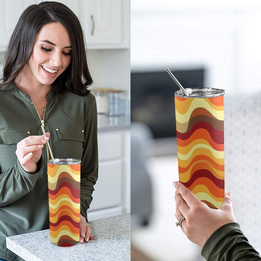 70s Retro Tumbler 20oz Lid Straw, Orange Brown Vintage Stainless Steel Travel Mug Insulated Cup Flask Coffee Traveler Custom Gift Men Women