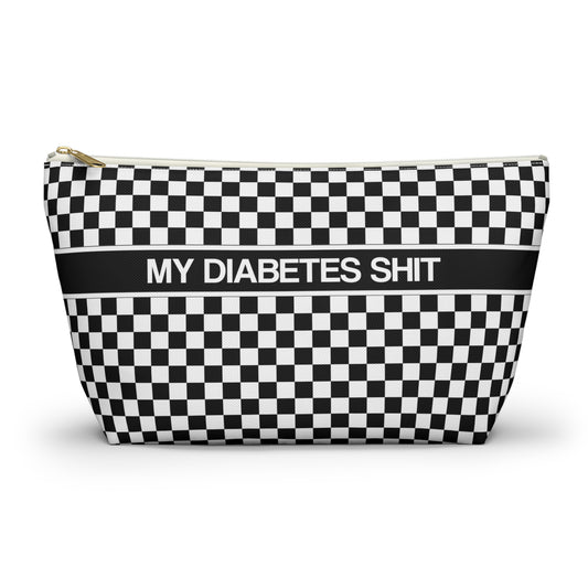 My Diabetes Shit Bag, Funny Diabetic Supply Case Black White Checkered Type One 1 Accessory Zipper Travel Toiletry Pouch Gift w T-bottom