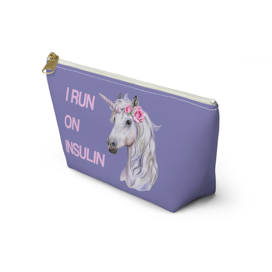 Diabetes Supply Case Bag for Kids, I Run On Insulin Unicorn Cute Girls Women Awareness Gift Type 1 Diabetic Accessory Zipper Pouch Children