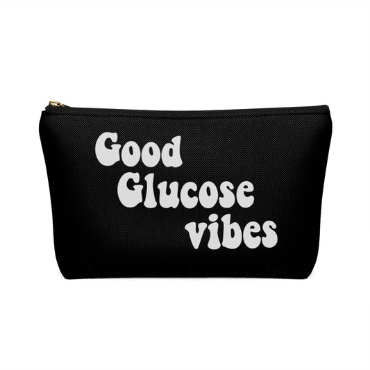 Good Glucose Vibes, Diabetes Supply Bag Diabetic Type 1 One, Type 2 Stuff Funny Awareness Travel Accessory Zipper Pouch w T-bottom Gift