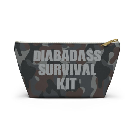 Diabadass Survival Kit Bag, Diabetes Bag, Fun Diabetic Supply Case, Men Carrying Type 1 Gift, t1d Camo Accessory Zipper Pouch Bag w T-bottom
