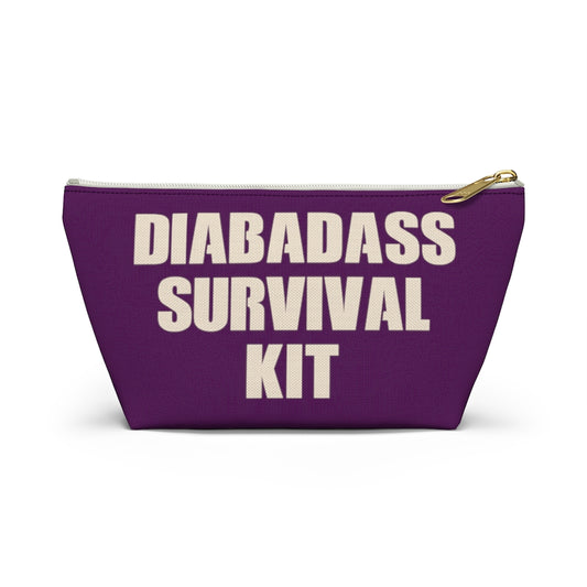 Diabadass Survival Kit Bag, Diabetes Bag, Fun Diabetic Supply Case, Cute Carrying Case Gift, Purple Accessory Zipper Pouch Bag w T-bottom
