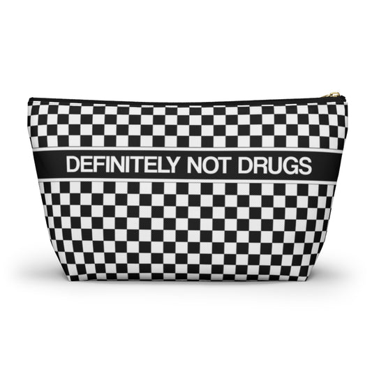Definitely Not Drugs Bag, Funny Zip Pouch Medicinal Med Medication Checkered Black White Canvas Zipper Large Small Travel Organizer