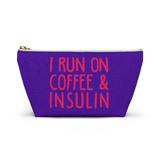 I Run On Coffee And Insulin Bag, Diabetes Supply Bag, Funny diabetic Type 1, Insulin Pump Pouch Travel Case Accessory w T-bottom