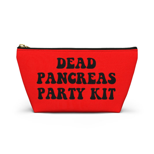 Dead Pancreas Party Kit, Diabetes Supply Bag, Fun Red Diabetic Case, Cute Carrying Case Gift, Type 1 Accessory Zipper Pouch Bag w T-bottom